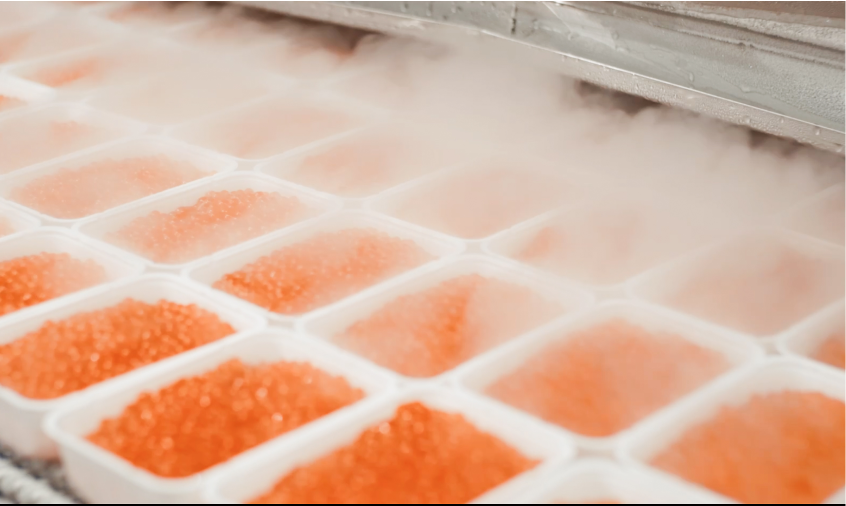スピード感は、いくらを冷凍するときにも重要です。シラリカいくらの凍結には-196度の窒素ガスを使用し急速冷凍。短時間で凍結することにより、旨味を閉じ込め、ドリップも防止し、いつでも作りたてをお楽しみ頂けます。